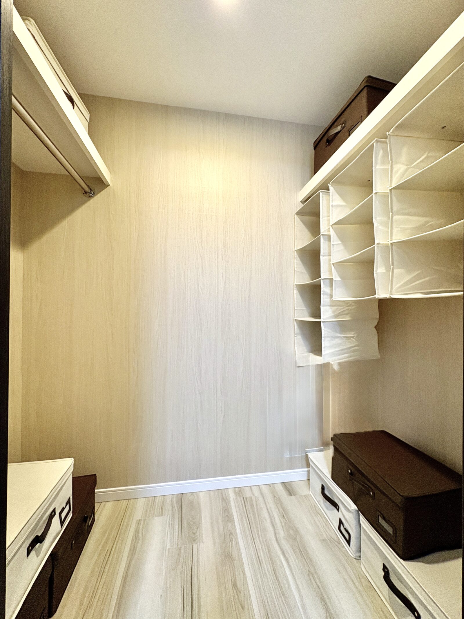 内装ウォークインクローゼットには、両サイドにハンガーパイプと、棚が設置され、豊富な収納力があります!