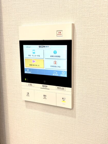 カラーモニター付インターフォン セコムマンションセキュリティー導入、防犯センサーやカメラにより、セキュリティー性能を高めています
