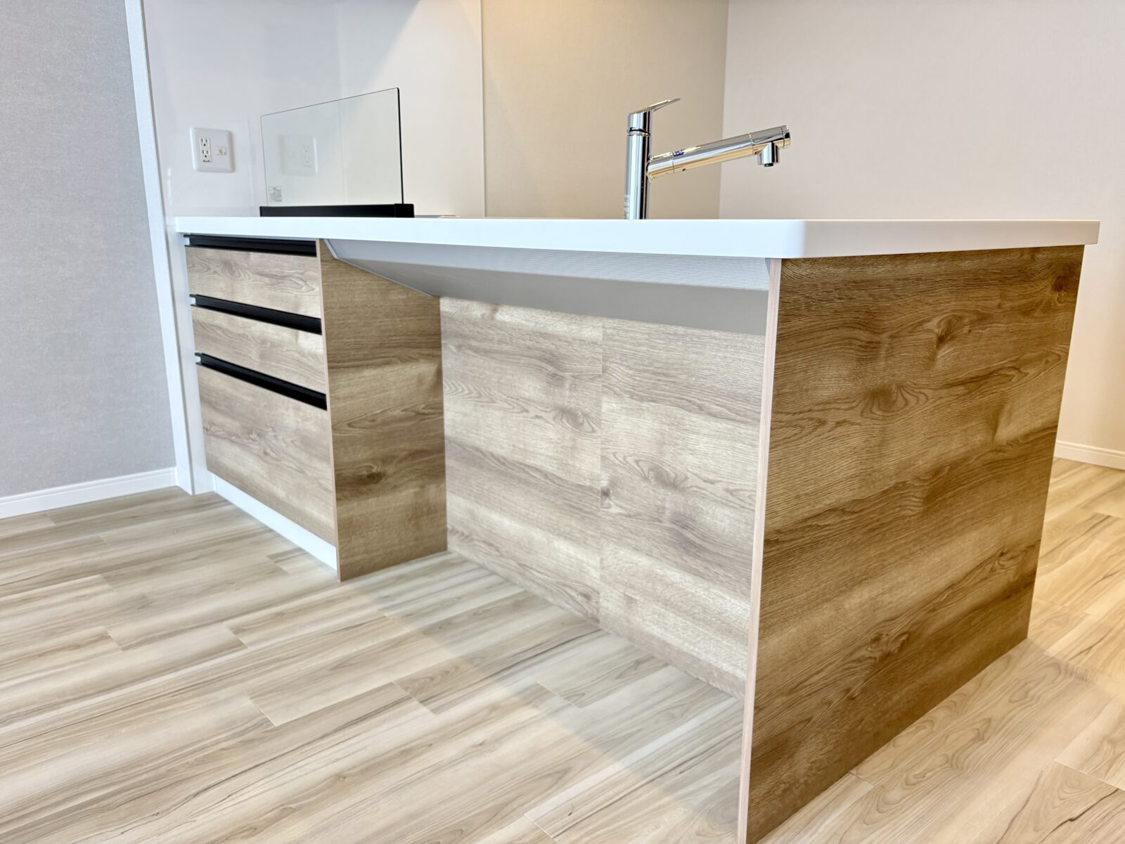 キッチンキッチンシンクには、天板と一体の人造大理石が施され、メンテナンス性に優れます