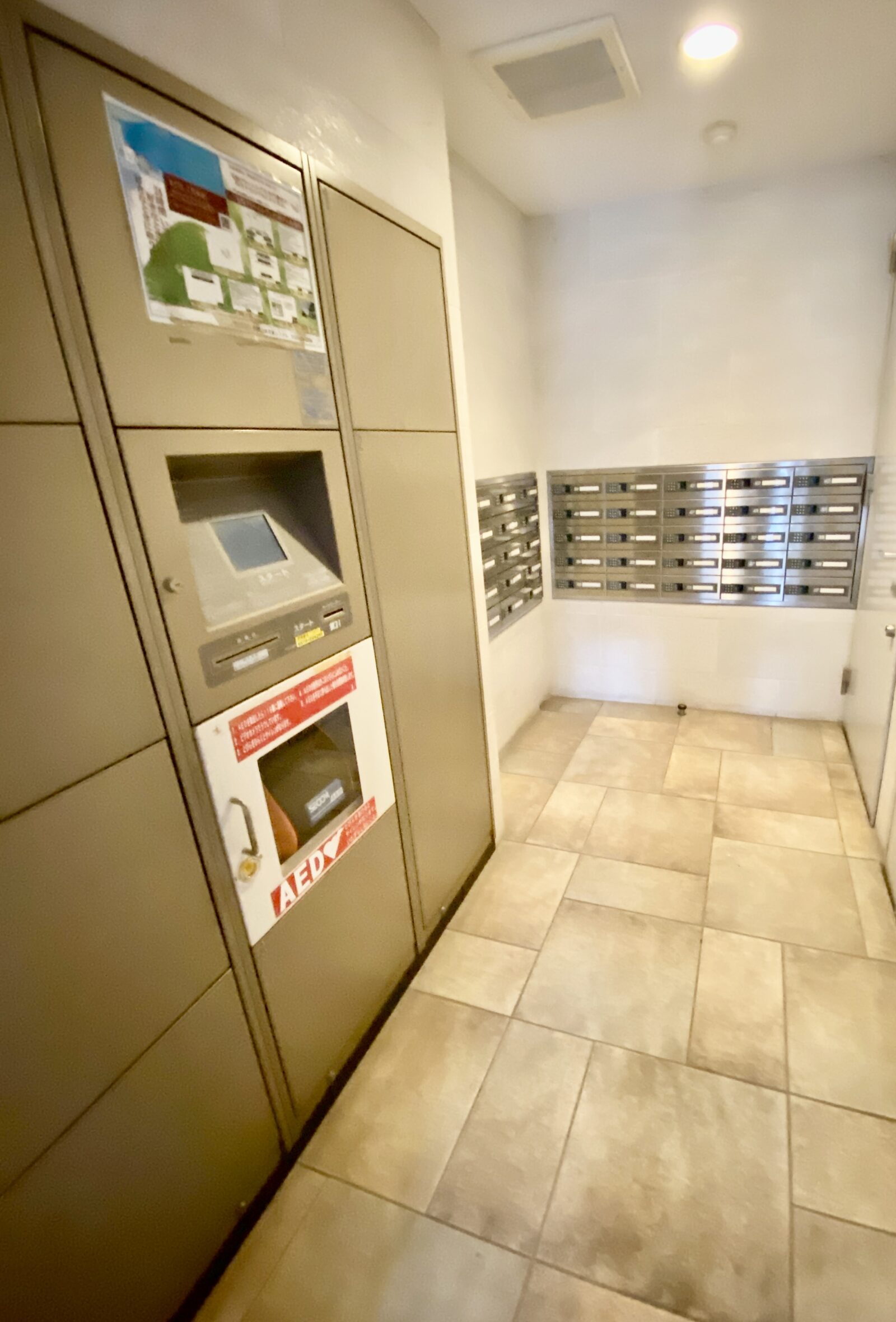 「24時間」荷物の受取が可能な「宅配ボックス」があります。また、AEDも設置され、万が一の際に安心です。
