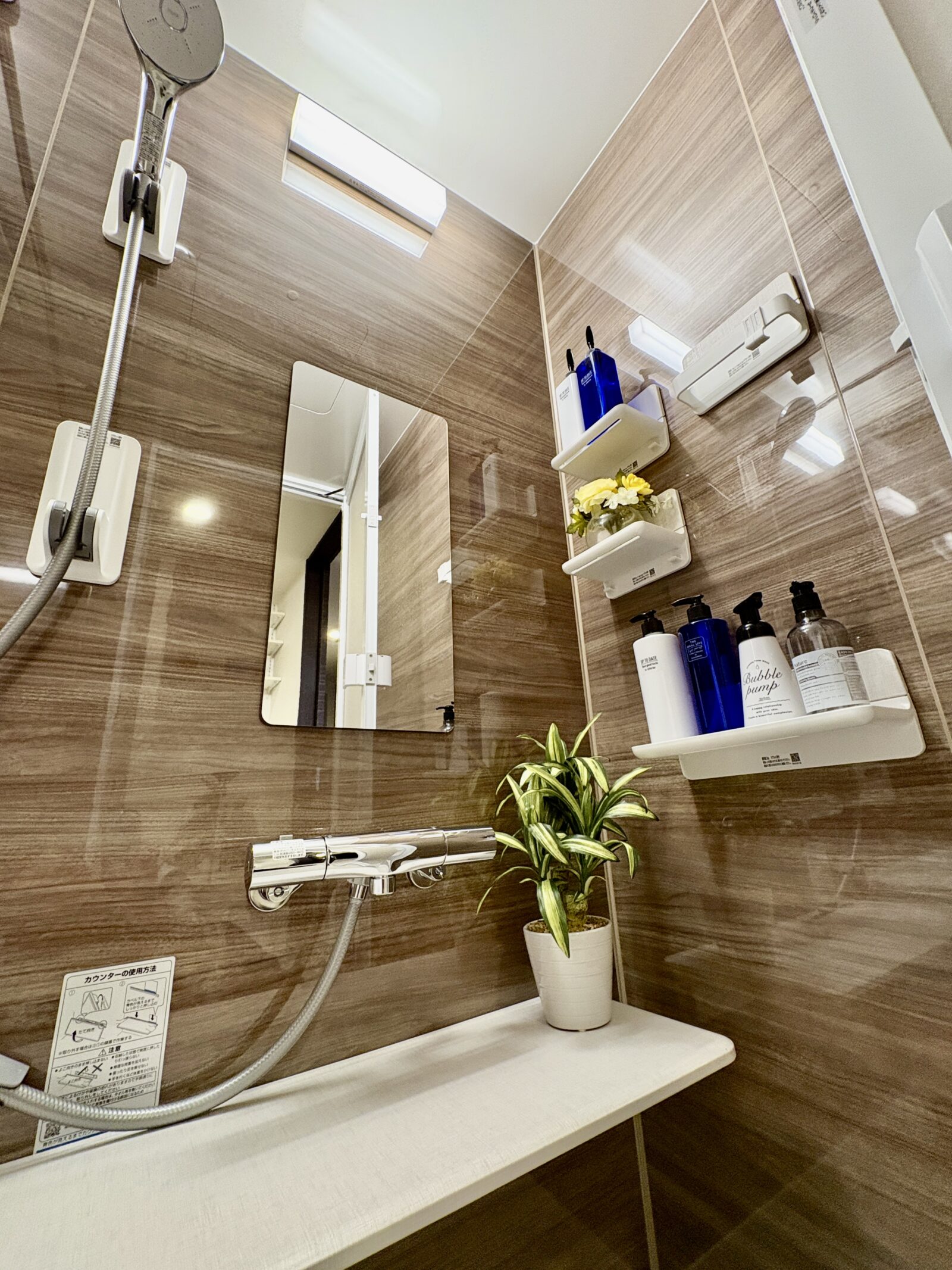 風呂棚やミラーはマグネット式であり、高さや位置を自由に調整可能です!